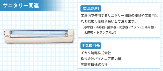 お客様のニーズに合わせた工場機械をご提案致します。 ご希望の生産量、生産効率に合わせたり、ご希望のメーカーから選択することも可能です。 また、機械のみならず工場で使用するサニタリーなどの商品も取り扱っております。